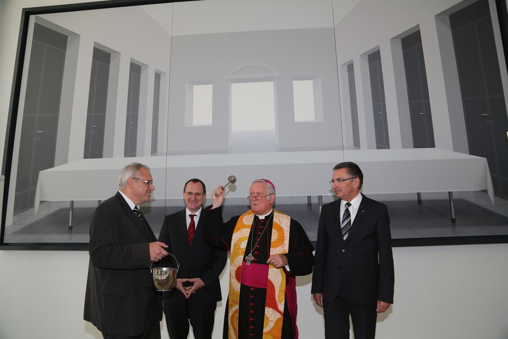 Ich möchte daher Herrn Diözesanbaumeister Cesare Augusto Stefano, Domkapitular Dr. Jürgen Lenssen sowie dem Rektor des Hauses, Domkapitular Dr. Helmut Gabel samt allen, die hier in den letzten Jahren für die Erneuerung des Hauses gearbeitet haben, für ihren Einsatz und ihr Engagement danken.