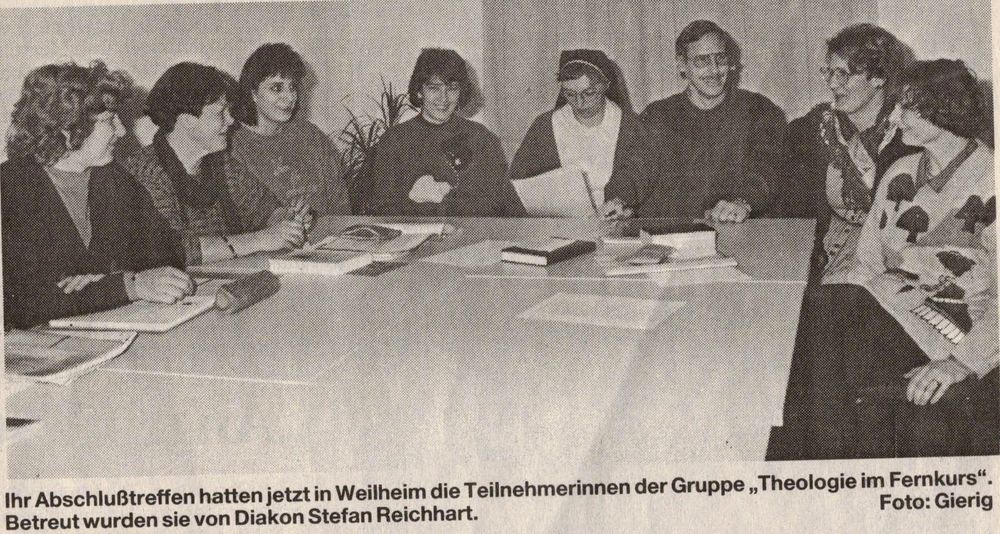 Begonnen hat es 1991. Ich habe das Schreiben von DK Prälat Josef Grünwald an den Leiter des Schulreferats, Msgr. Ernst Wiedemann, vorliegen, in dem Prälat Grünwald mich als Leiter des Begleitkurses benennt und Msgr. Wiedemann meine Bereitschaft mitteilt. Gerne habe ich damals diese Aufgabe übernommen, denn für einen Theologen ist das eine tolle Aufgabe und Herausforderung. Im April 1992 bin ich dann in Weilheim mit neun TeilnehmerInnen eingestiegen.