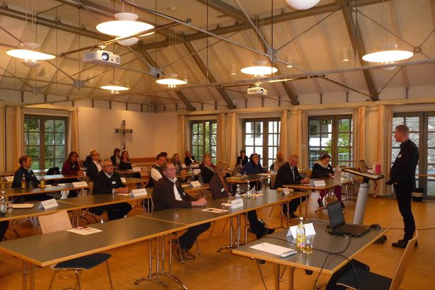 Die Veranstaltung wurde von Dr. Martin Ostermann als ehemaligem ThiF-Studienleiter theologisch kompetent begleitet. Er fragte nach der verändernden Kraft der theologischen Bildung für die Kirche in der Welt von heute. Dr. Ostermann ging von einem transitiven Bildungsbegriff aus, der neben objektiven Bildungsgütern und -zielen, v. a. auch den subjektiven Aspekt der aktiven Selbsttätigkeit dessen, der sich bildet, integriert. Zusammen mit den Teilnehmenden buchstabierte er dies für die theologische Bildung, deren Weiterentwicklung vor einigen Jahren vom Wissenschaftsrat ausdrücklich empfohlen wurde. Weil eine persönliche Aneignung von Theologie auch Sichtweisen verändert, wurde nach der resultierenden Sendung der Getauften gefragt: Wie können wir als Kirche in der Welt und für die Menschen leben? An Round Tables setzten sich die Teilnehmenden leidenschaftlich mit vorgestellten Thesen auseinander und forschten nach ihrem Auftrag „in der Kirche und in der Welt“ (LG 31). Theologie zu betreiben ist ein existentieller Aneignungsprozess dessen, was für unsere Sendung heute wichtig ist.