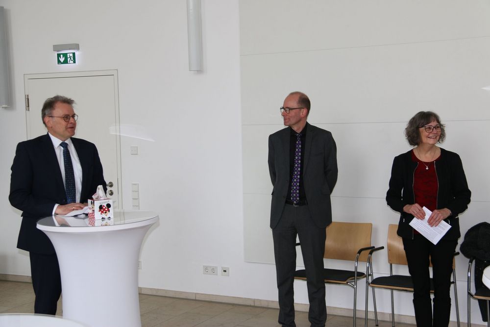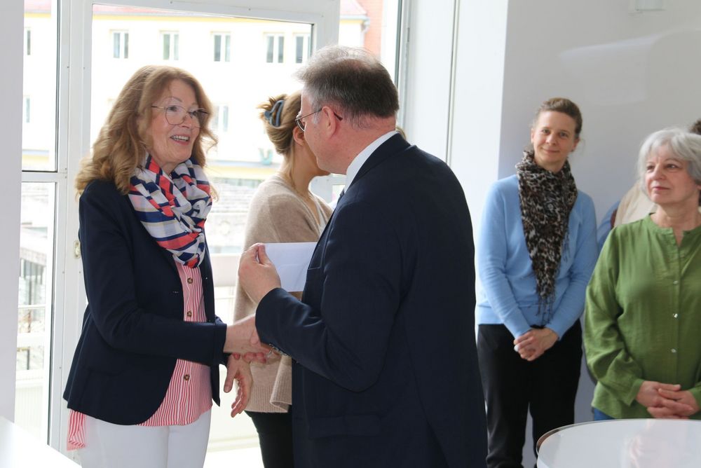 29 Jahre lang war sie im Dienst des Bistums Würzburg. Die Kolleginnen und Kollegen der gesamten Domschule Würzburg sowie einige ehemalige Mitarbeitende dankten Gerhart für die schöne gemeinsame Zeit. In einem bewegenden Video kamen wichtige Stationen und Eindrücke aus dem Arbeitsleben Gerharts nochmals vor Augen. Den Dank des gesamten Teams unterstrich großer Beifall aller Anwesenden. Akademiedirektor Dr. Rainer Dvorak stellte die gewissenhafte und geduldige Art heraus, mit der Gerhart viele Jahre die Fernstudierenden telefonisch und per E-Mail beraten und ermutigt habe. Für die Mitarbeitervertretung (MAV) des Bistums Würzburg kam Gabriele Flügel und erwähnte in ihrer Ansprache mit Bezug auf den Schriftsteller Hermann Hesse den Zauber, der jeder Veränderung und jedem Abschied innewohne, sowie die Chancen, die neue Lebensabschnitte mit sich brächten. Dr. Stefan Meyer-Ahlen, Leiter von „Theologie im Fernkurs“, dankte Gerhart für ihren unermüdlichen Einsatz und betonte ihre stets einfühlsame, hilfreiche und präzise Art, die den Fernstudierenden über viele Jahre das Ankommen in den Kursen von „Theologie im Fernkurs“ erleichtert habe.