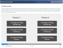 Die Übung startet mit einem einführenden Video von der für das Prüfungswesen zuständigen Studienleiterin. Die Fernstudierenden erhalten wertvolle Tipps zur Materialsammlung bzw. Literaturrecherche und die Übung erklärt, wie man gefundene Quellen als für eine wissenschaftsorientierte Hausarbeit geeignet identifiziert. Es folgt ein Selbsttest zum theoretischen Wissen über das Zitieren. Dann können die Fernstudierenden die korrekte Zitierweise üben. Dazu werden verschiedene Beispielzitationen angegeben und die zukünftigen Prüflinge müssen erkennen, welche Zitationen formal falsch sind (Bsp. siehe Bild 1). Das System gibt direkte Rückmeldung, ob das Ausgewählte richtig ist. Zum Abschluss werden zwei beispielhafte Aufgabenstellungen für Hausarbeitsthemen gegeben. Mit diesen Beispielthemen können die Fernstudierenden üben eine Gliederung, Stichworte für eine Einleitung und für einen Schlussteil zu formulieren. Danach kann der eigene Entwurf mit Lösungsvorschlägen abgeglichen werden (siehe Bild 2).