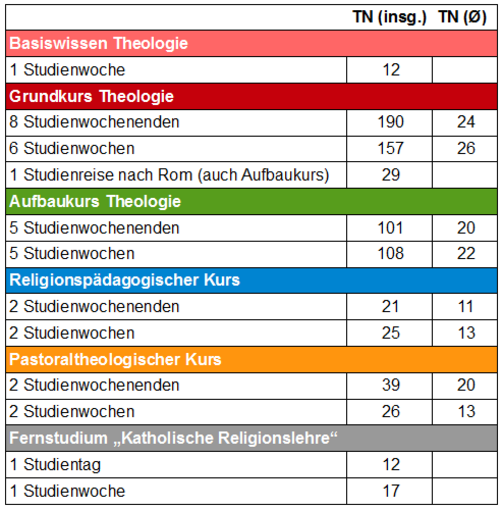 Religionspädagogischer Kurs; Pastoraltheologischer Kurs; Sonstige Kurse