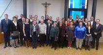 Die Absolventen – 16 Frauen und 13 Männer im Alter von 26-79 Jahren – hatten am Grundkurs Theologie im Rahmen des „Erfurter Modells“ teilgenommen, das hier seit vielen Jahren praktiziert wird. Drei Jahre lang hatten sie sich an insgesamt 18 Kurswochenenden – jeweils von Freitagabend bis Sonntagmittag – im Bildungshaus St. Ursula getroffen und dabei die 24 Lehrbriefe des Grundkurses mit Referentinnen und Referenten aus den jeweiligen theologischen Disziplinen besprochen. Hier ist besonders die gute Zusammenarbeit mit der Katholisch-Theologischen Fakultät der Universität Erfurt zu betonen, da die Professorinnen und Professoren, aber auch die wissenschaftlichen Mitarbeiterinnen und Mitarbeiter immer wieder gerne bereit sind, zu den Kurswochenenden zu kommen, um die theologischen Inhalte zu vermitteln und sich den Fragen der Teilnehmenden zu stellen. Das Themenspektrum ging dabei oft weit über die Lehrbriefe hinaus. Mindestens genauso wichtig wie die theologische Wissensvermittlung war jedoch der Austausch der Teilnehmenden untereinander, die ganz unterschiedliche Glaubenswege haben: Während die einen schon seit ihrer Kindheit fest im Glauben verwurzelt sind, haben sich andere erst als Erwachsene taufen lassen. Manche sind von den volkskirchlichen Strukturen des Eichsfelds geprägt, andere kommen aus der Diaspora. Auch evangelische Christen waren dabei, und ein Teilnehmer wurde während des Kurses getauft – der Kurs hatte seine Entscheidung für die Taufe bestärkt. Zudem waren neben vielen Teilnehmerinnen und Teilnehmern aus dem Bistum Erfurt auch die Bistümer Magdeburg, Dresden-Meißen, Görlitz, Fulda und Limburg vertreten. So ergaben sich ganz unterschiedliche Sichtweisen auf die theologischen Themen, was zu angeregten Diskussionen und spannenden Perspektivwechseln führte.
