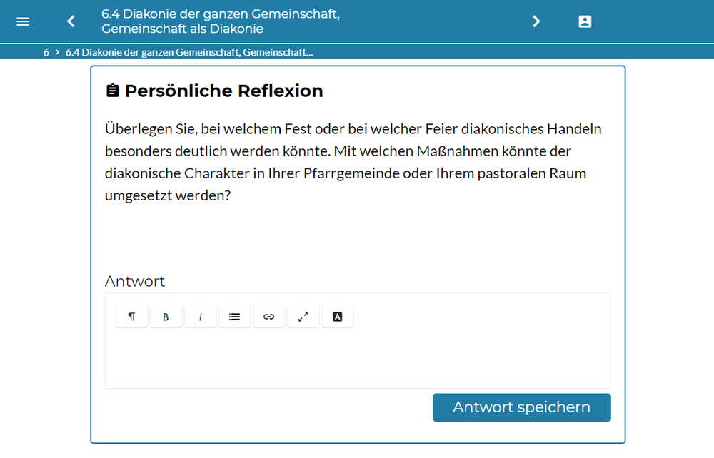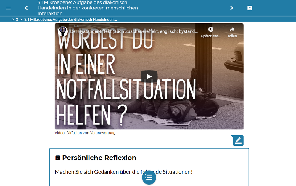 Seit April 2020 steht den Studierenden des Pastoraltheologischen Kurses das PK-Modul 3.2 "Sozial-diakonische Kompetenzen" als digitaler Lehrbrief zur Verfügung. Das Format ist e-lerndidaktisch aufbereitet und bietet digitale Elemente, die über das Markieren und Kommentieren hinausgehen.